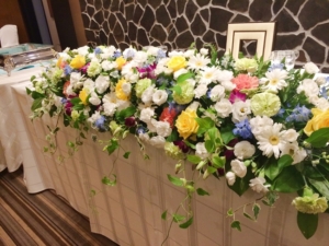 真夏のポップな色合いの会場装花